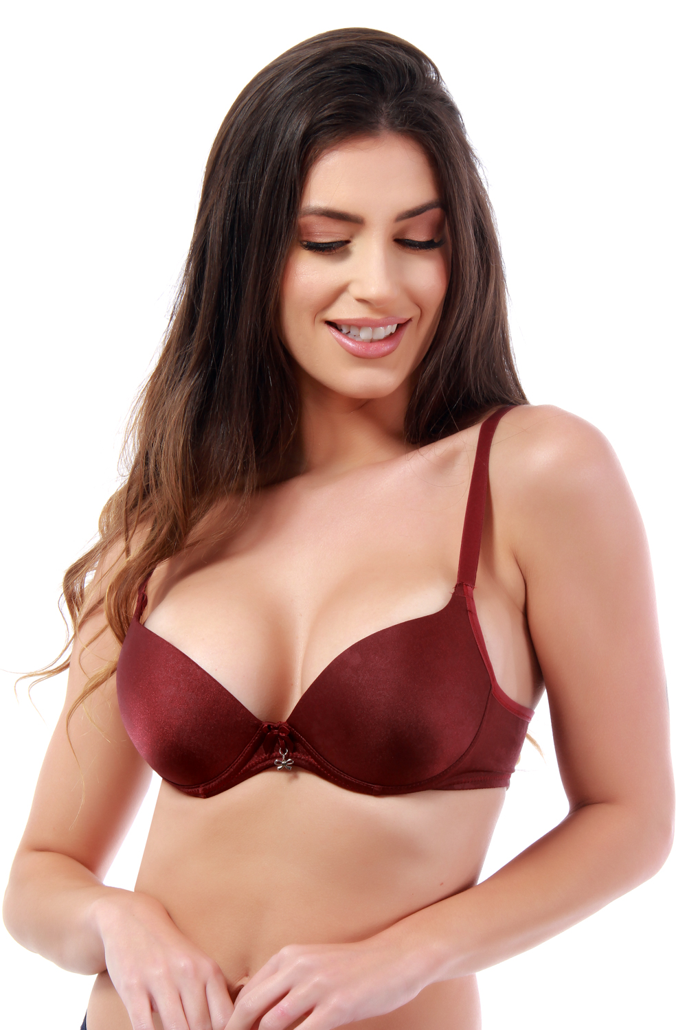 Soutien em microfibra trabalhada. Modelo básico, bojos pré-moldados e arco ideal para seios médios a grandes. Atenção para a pala mais larga na lateral.